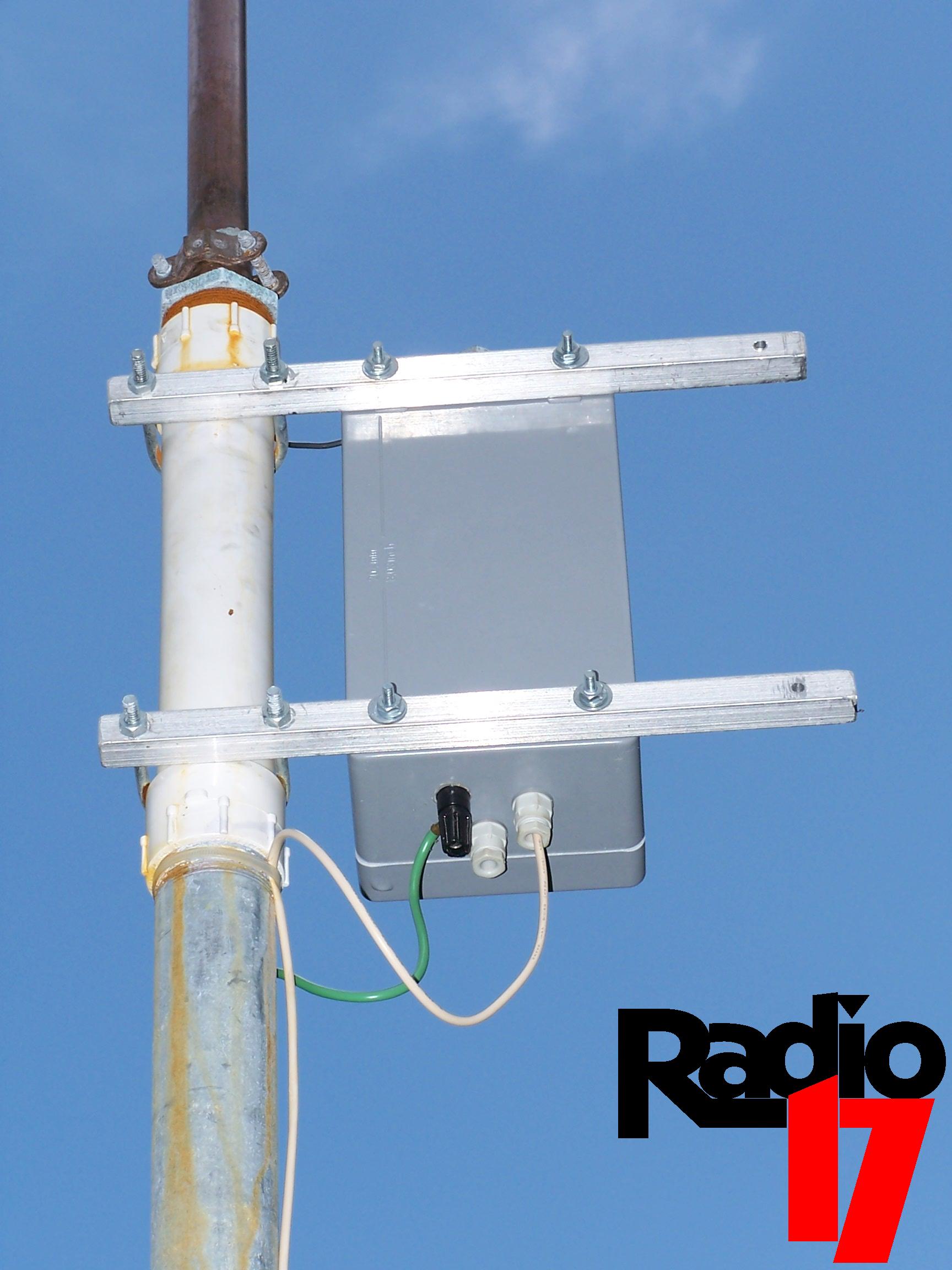 Photo – The top of the transmitter, including connection to the 10ft copper mast.
